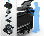 Οι κεφαλές εκτύπωσης με δυνατότητα αντικατάστασης από τον χρήστη σας επιτρέπουν να αξιοποιήσετε πλήρως τον χρόνο παραγωγής σας, καθώς μπορούν εύκολα να αντικατασταθούν, χωρίς ειδικά εργαλεία, εντός 60 λεπτών. Ο SC-R5010 περιλαμβάνει επίσης μια λύση χύδην μελανιού (σακούλες μελανιού 1,5 λίτρου) για μειωμένο χρόνο εκτός λειτουργίας του εκτυπωτή, άνεση και χαμηλότερο κόστος μελανιού. Για περαιτέρω υποστήριξη της παραγωγικότητας της επιχείρησής σας, ο καινοτόμος ανιχνευτής υπερήχων μειώνει τον κίνδυνο βλάβης της κεφαλής εκτύπωσης, ενώ η τεχνολογία επαλήθευσης ακροφυσίων (NVT) αντισταθμίζει αυτόματα σε περίπτωση που φράξει κάποιο ακροφύσιο.