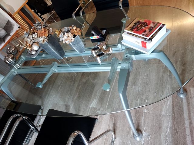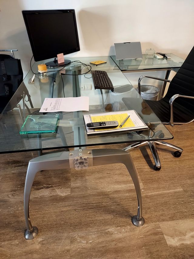 ΓΡΑΦΕΙΑ (2) γωνιακα διαστασεων 1 , 80 χ1 ,70 μ κρυσταλλινα του οίκου frezza ενα γραφειο συνεδριασεων 2. 40 χ1. 15 κρυσταλλινο του οίκου frezza και τρια φωτιστικα γραφειων επικοινωνία μέσω τηλεφώνου 6977351801, τιμή 5.500€, 09:00-21:00