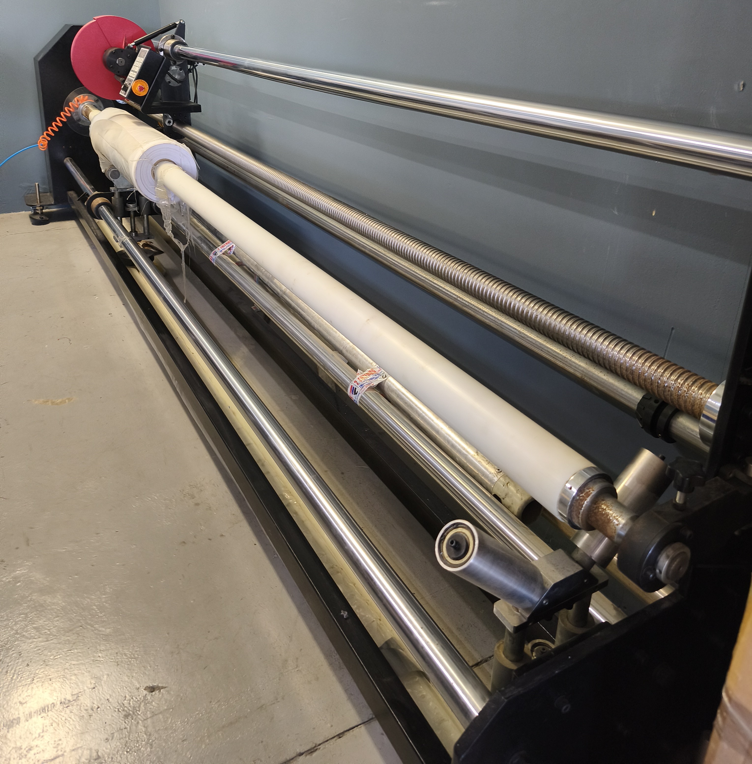 Αυτόματη μηχανή κοπής ρολών. Πλάτος ρολλού 3,30 μ. Κατάλληλη για: Χαρτί, αυτοκόλητο, μουσαμά, καμβά κα. Αχρησιμοποίητη εντελώς. Διαθέτει και μετρητή μήκους υλικού για ανατύλιξη Η μηχανή βρίσκεται στην Αττική.